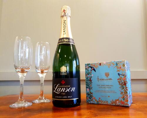 Enjoy Luxury Chocolates and Lanson Champagne in your lodge on arrival. Cost: £55. (These can be ordered individually)