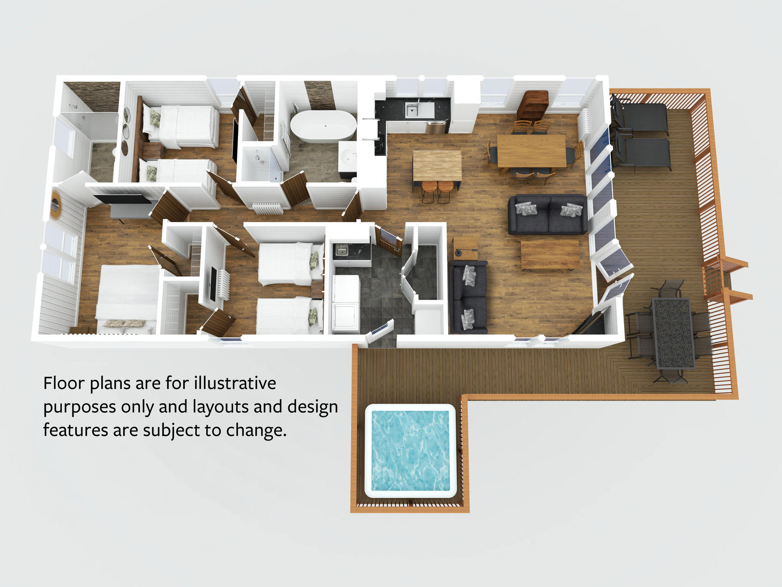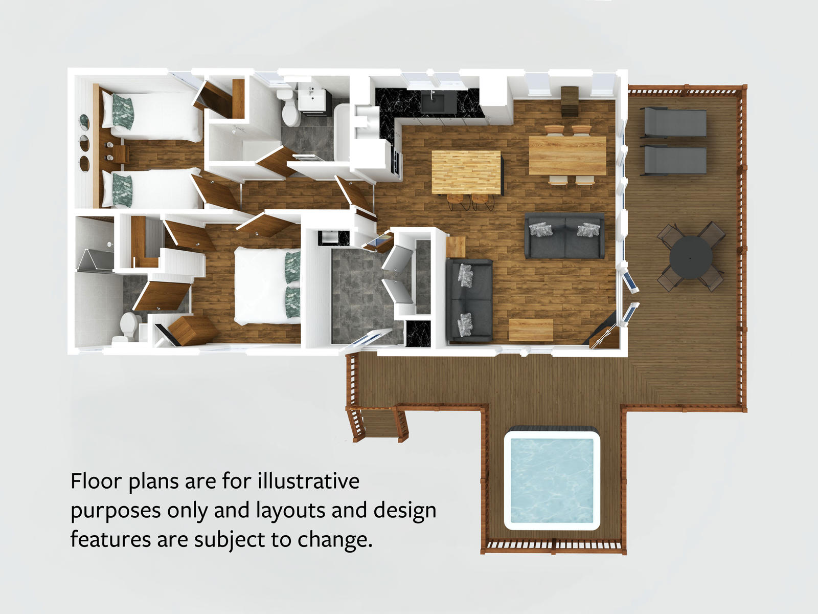 The Spinney Spa Pet lodges are designed for people who love the great outdoors and are nestled amongst the trees. The contemporary lodges have stylish interiors, quality appliances and luxury bedrooms and bathrooms. There is also a large veranda with outdoor dining furniture, two sun loungers and space to enjoy a BBQ on a summer evening. They are designed for those who love to be surrounded by nature with easy access to the forest trail and wonderful woodland views.