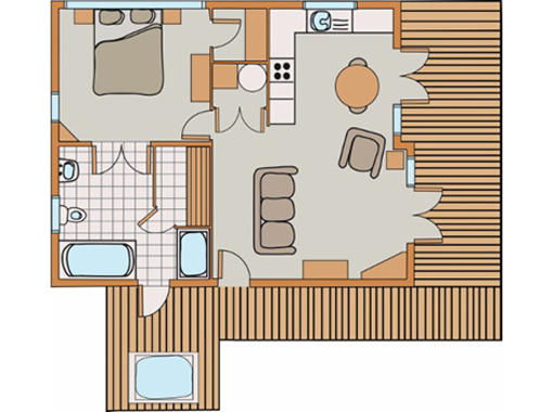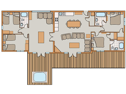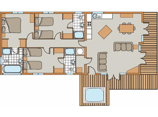 *Please note that there are two different floor plans for the Glade Exclusive 2 Spa lodges. One is central living and the other is end living (with the bedrooms together). Please see the Floor Plans. If you have a preference please check before booking.